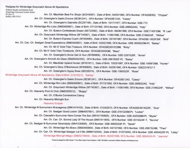Am. Can. Ch. Sealgair Great Expectations X Am. Ch. Winteridge N Sunrunners Xtravaganza